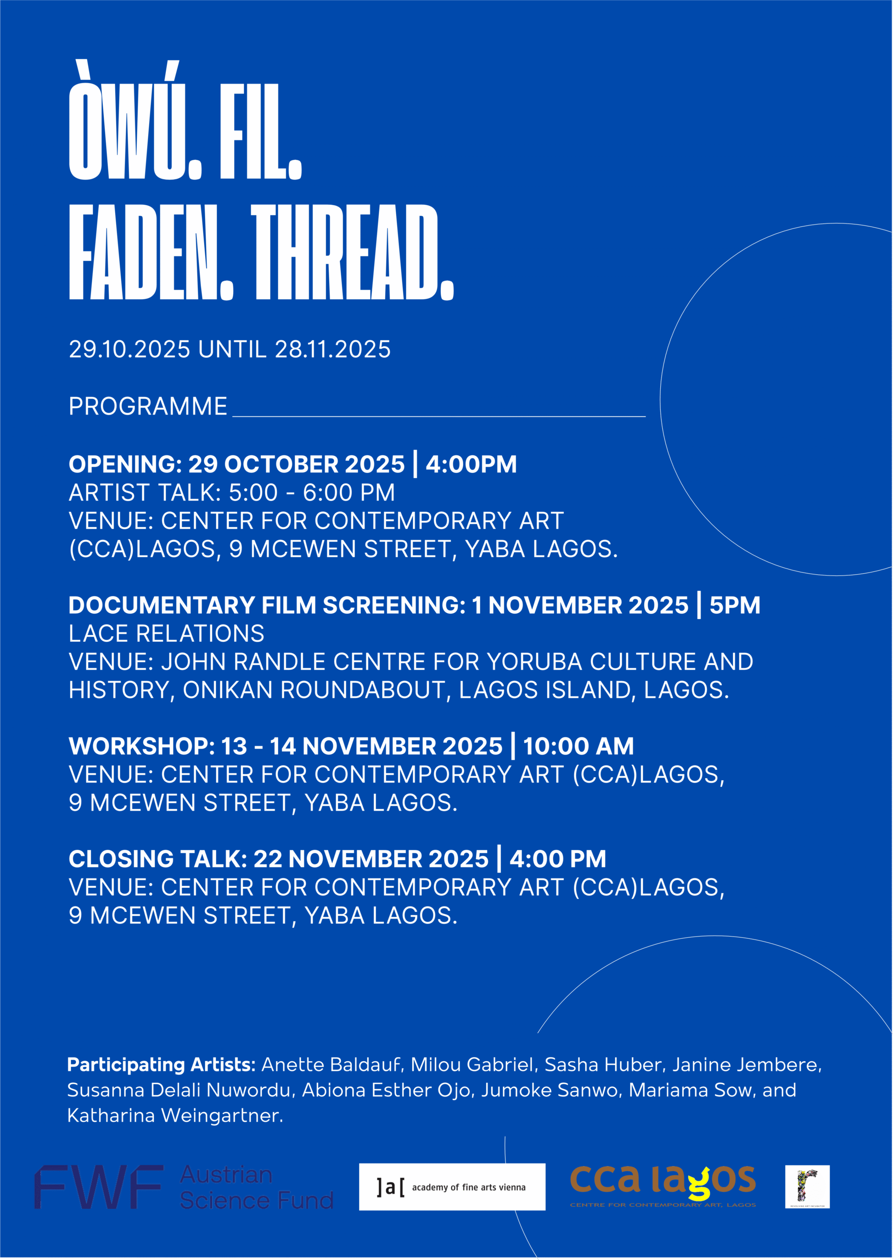 Venue : CCA, Lagos – 9 McEwen Street, Yaba