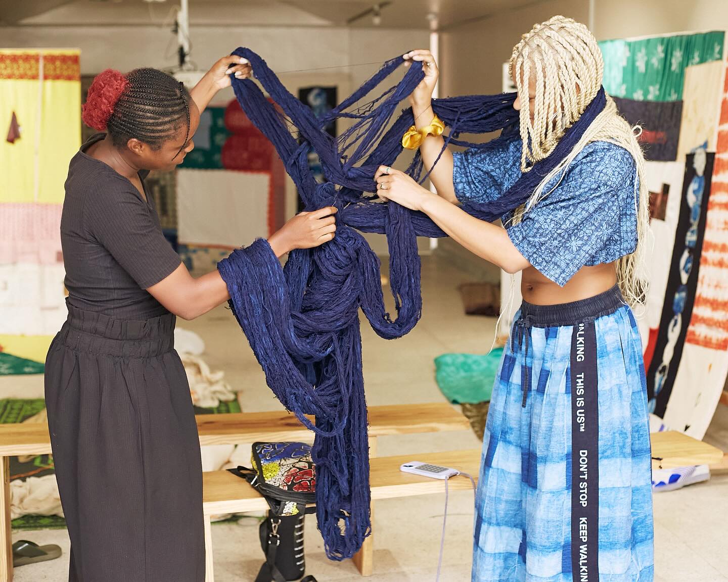 Participants explored tying techniques alongside meaningful conversations around textiles, the body, and heritage.